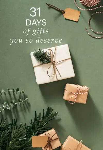 31 giorni di regali che meriti tanto è come un calendario dell'avvento nella tua casella di posta. Riceverai regali magici e significativi per tutto il mese di dicembre. Questi doni ti incoraggeranno ad abbracciare le vacanze con gioia e intenzione. Ti aiuteranno anche ad affrontare il nuovo anno con il cuore aperto.